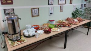 Unser bewährtes Versorgungsteam mit Angelika Fritze, Carola Schuller, Mathias Köppe und Gabriel Schuller hatte zu um 9.30 Uhr das Frühstück fertig vorbereitet. Damit konnten sich die Teilnehmer erst einmal Stärken. Während der Spiele wurde die Teilnehmer mit diversen Getränken versorgt. In der Halbzeit richtete das Versorgungsteam die Mittagsversorgung je nach Wunsch individuell her. Im Angebot war selbstgemachter Kartoffelsalat mit Bockwurst/ Boulette oder Knacker.